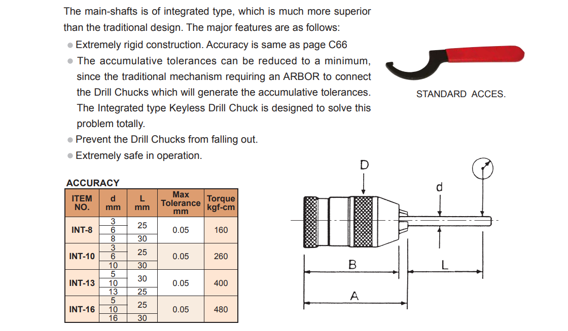 – Độ chính xác của bầu kẹp mũi khoan là: 0.05mm.