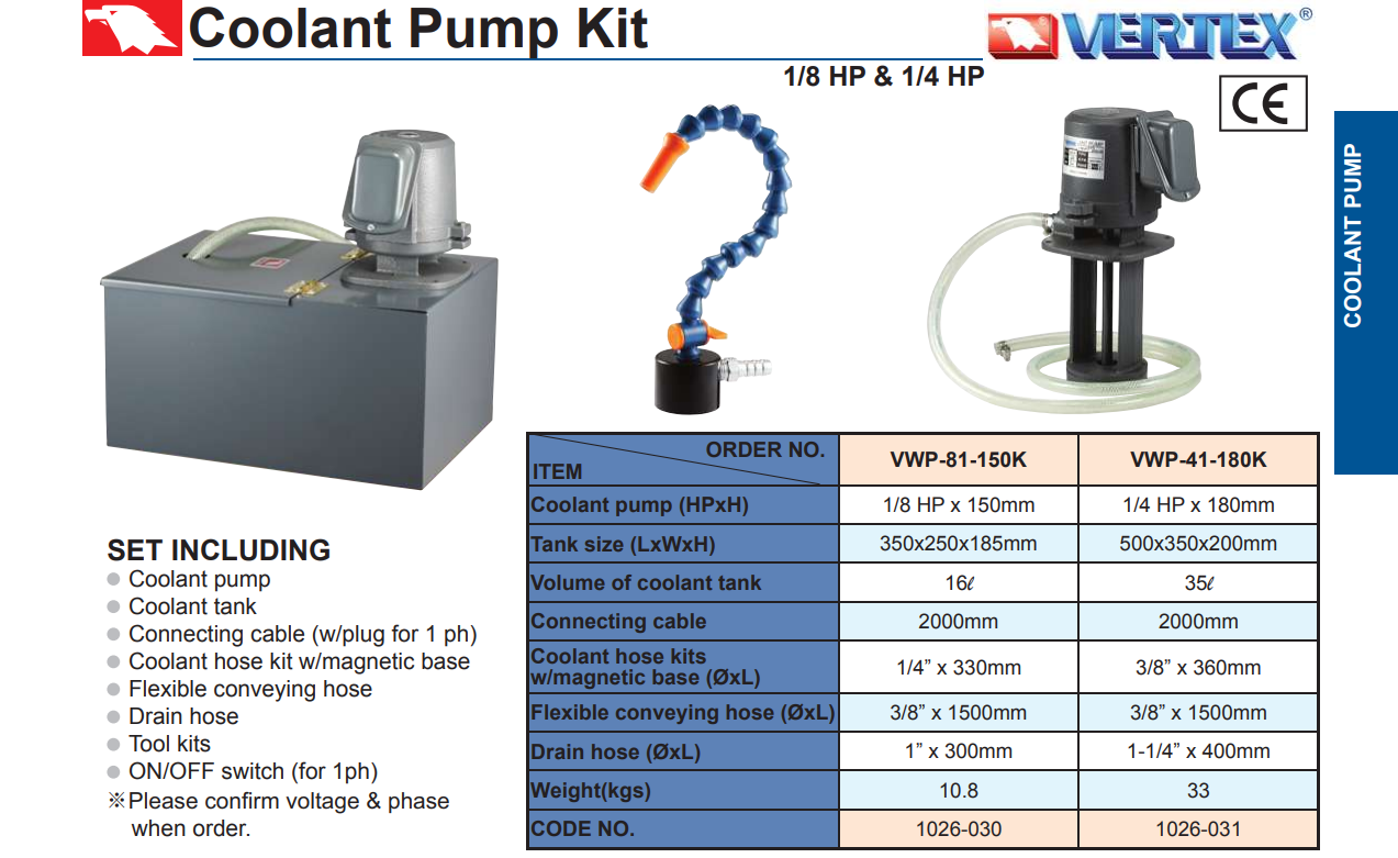 BỘ BƠM DUNG DỊCH TƯỚI NGUỘI VERTEX VWP-41-180K là dùng để bơm dung dịch tưới nguội trong quá trình gia công.