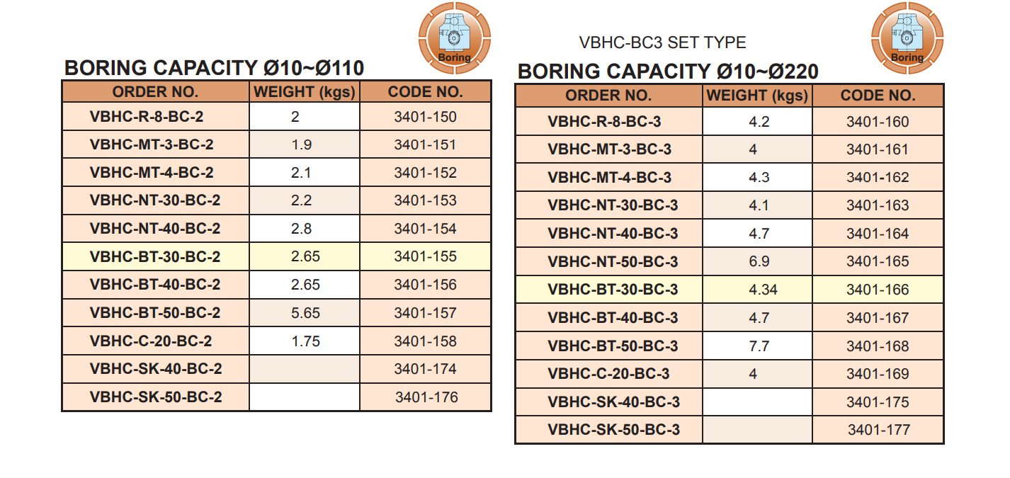 VBHC-R-8-BC-2; VBHC-MT-3-BC-2; VBHC-MT-4-BC-2; VBHC-NT-30-BC-2; VBHC-NT-40-BC-2; VBHC-BT-30-BC-2; VBHC-BT-40-BC-2; VBHC-BT-50-BC-2; VBHC-C-20-BC-2; VBHC-SK-40-BC-2; VBHC-SK-50-BC-2; VBHC-R-8-BC-3; VBHC-MT-3-BC-3; VBHC-MT-4-BC-3; VBHC-NT-30-BC-3; VBHC-NT-40-BC-3; VBHC-NT-50-BC-3; VBHC-BT-30-BC-3; VBHC-BT-40-BC-3; VBHC-BT-50-BC-3; VBHC-C-20-BC-3; VBHC-SK-40-BC-3; VBHC-SK-50-BC-3