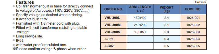 – Bộ đèn halogan VHL có thể chống bụi và nước có áp suất cao xâm nhập vào: chụp đèn, cánh tay đèn và chân đế.