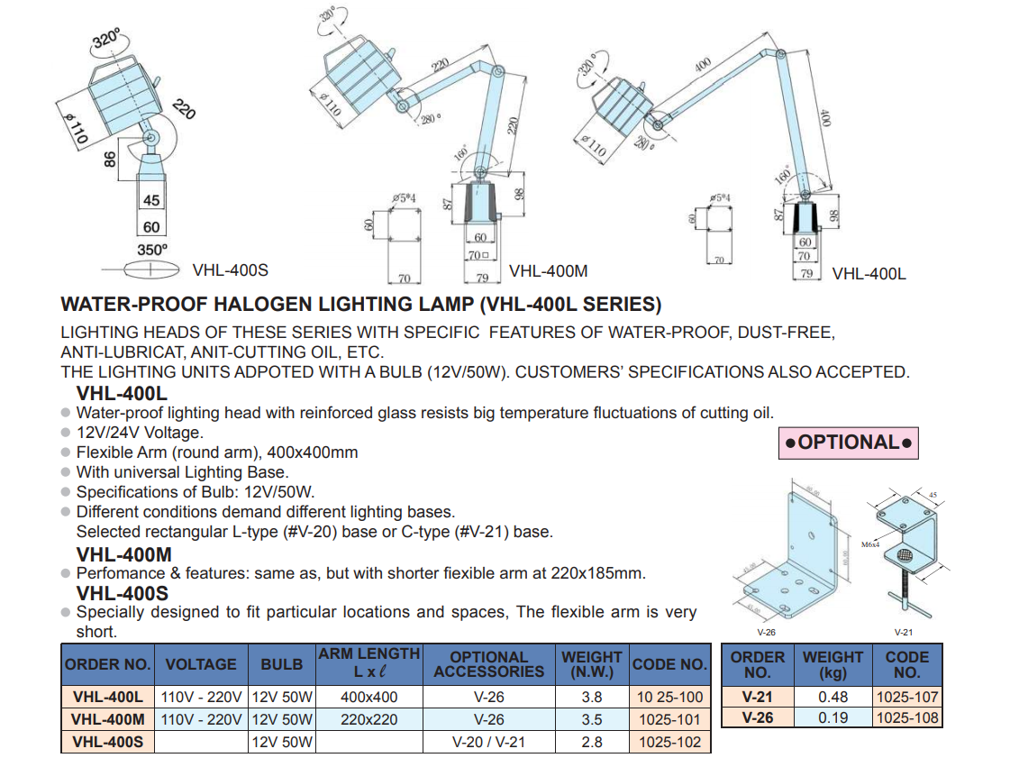 – Bộ đèn Halogen chống nước, chống bụi VHL-400L; VHL-400M; VHL-400S; VHL-500L; VHL-500M; VHL-500S của VERTEX dùng để chiếu sáng khu vực làm việc của máy gia công cơ khí.