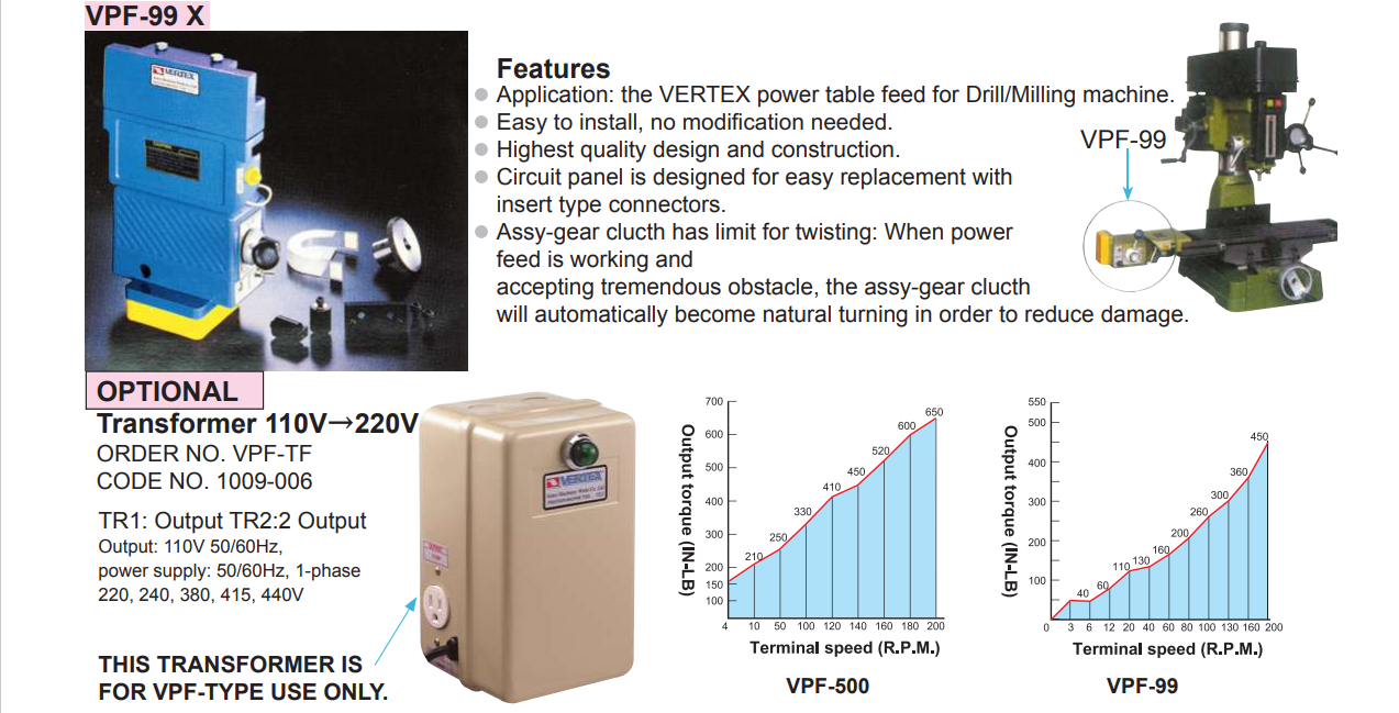 Bộ điều khiển tốc độ bàn máy VPF-500 X, VPF-500 Y, VPF-500 Z, VPF-99 X hãng Vertex, bộ điều khiển bàn máy này dùng trên máy phay, máy khoan, và một số gia công cơ khí khác