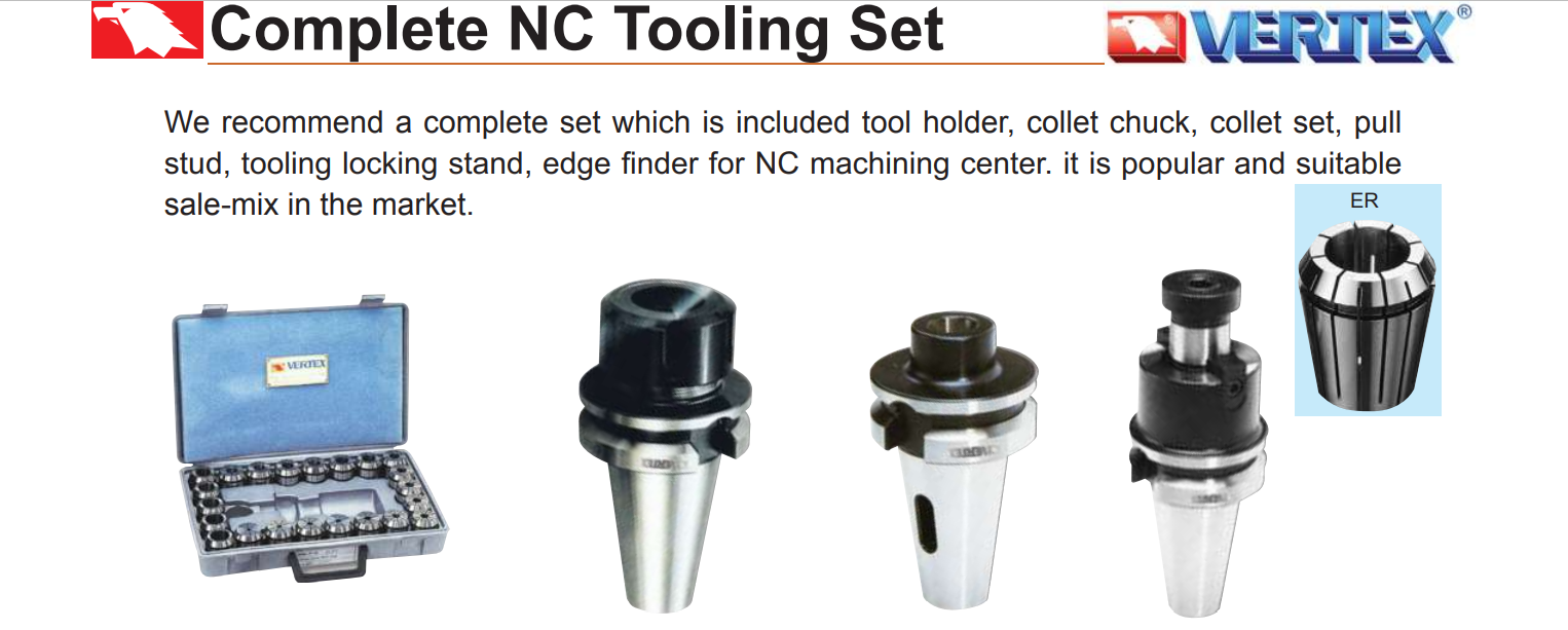 – Bộ gá kẹp dao đầy đủ cho máy phay NC VBT-30-0720, VBT-30-1520, VBT-40-1532, VBT-40-2432 của VERTEX dùng gá kẹp dao trên máy phay NC kiểu côn BT30, BT40.
