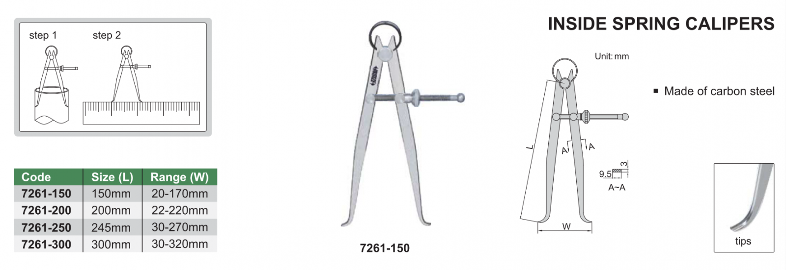 Compa INSIZE 7261-150 , INSIDE SPRING CALIPERS 7261-150