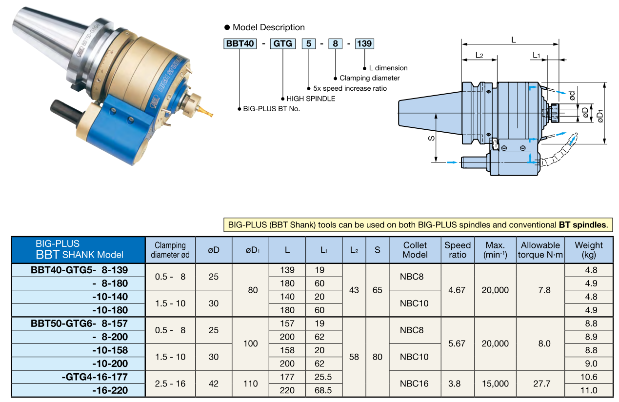 Mã sản phẩm: BBT40-GTG5-8-139 , -8-180 , -10-140 , -10-180