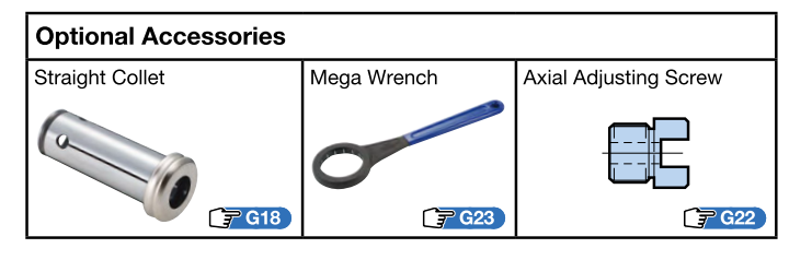 | BBT SHANK Model | Fig. | Clamping diamater φd | φD | ΦD1 | L | L1 | L2 | H | E | Mega Wrench |