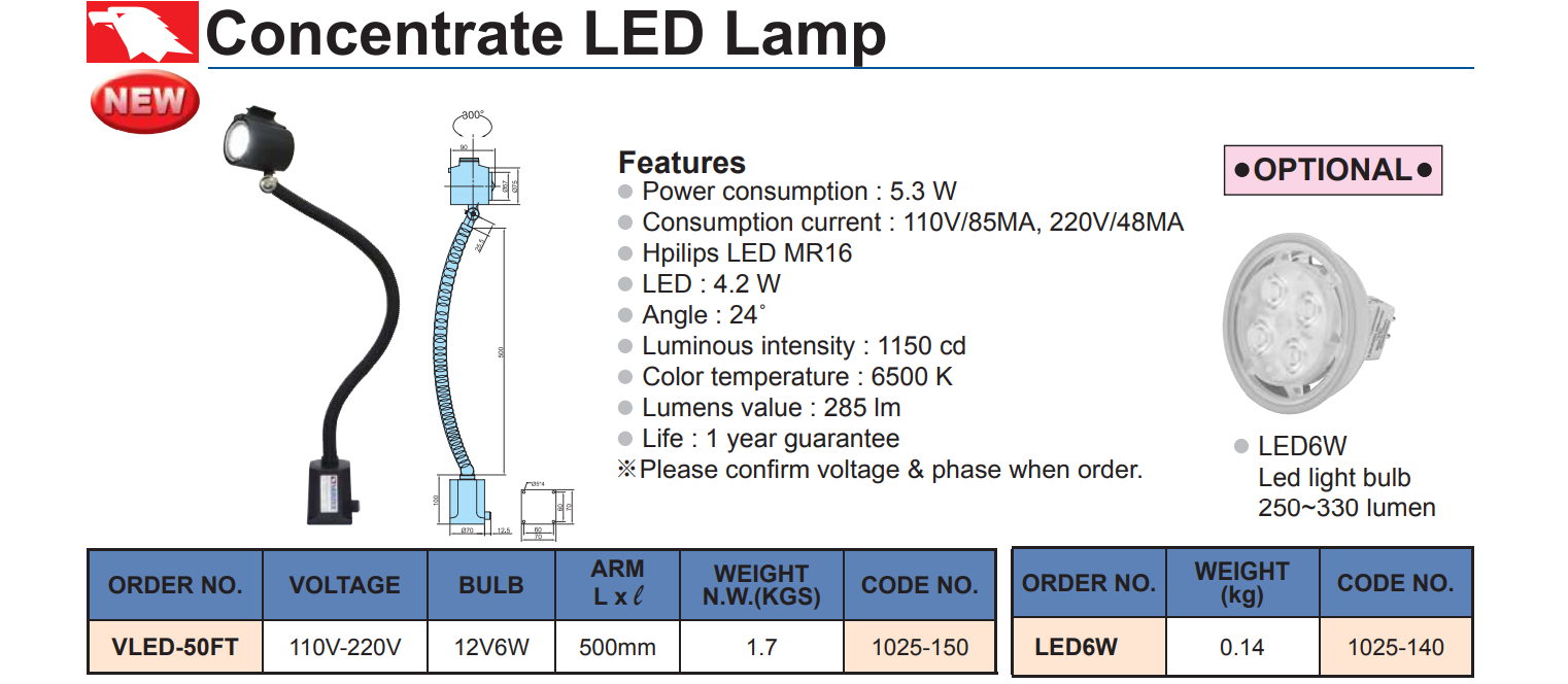 Đèn LED tập trung Vertex VLED-50FT là kiểu đèn làm việc chống nước, chống bui. Được dùng để lắp đặt trên các máy CNC, máy công cụ và các máy gia công khác.