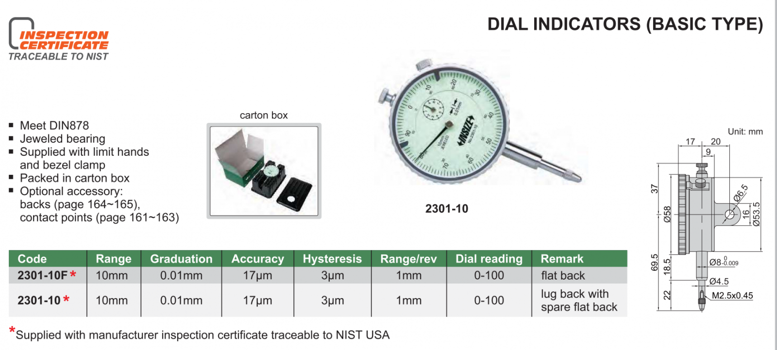 Đồng hồ so chân gập INSIZE là loại đông hồ so ứng dụng đo độ dơ, độ lệch trong gia công và sản xuất cơ khí