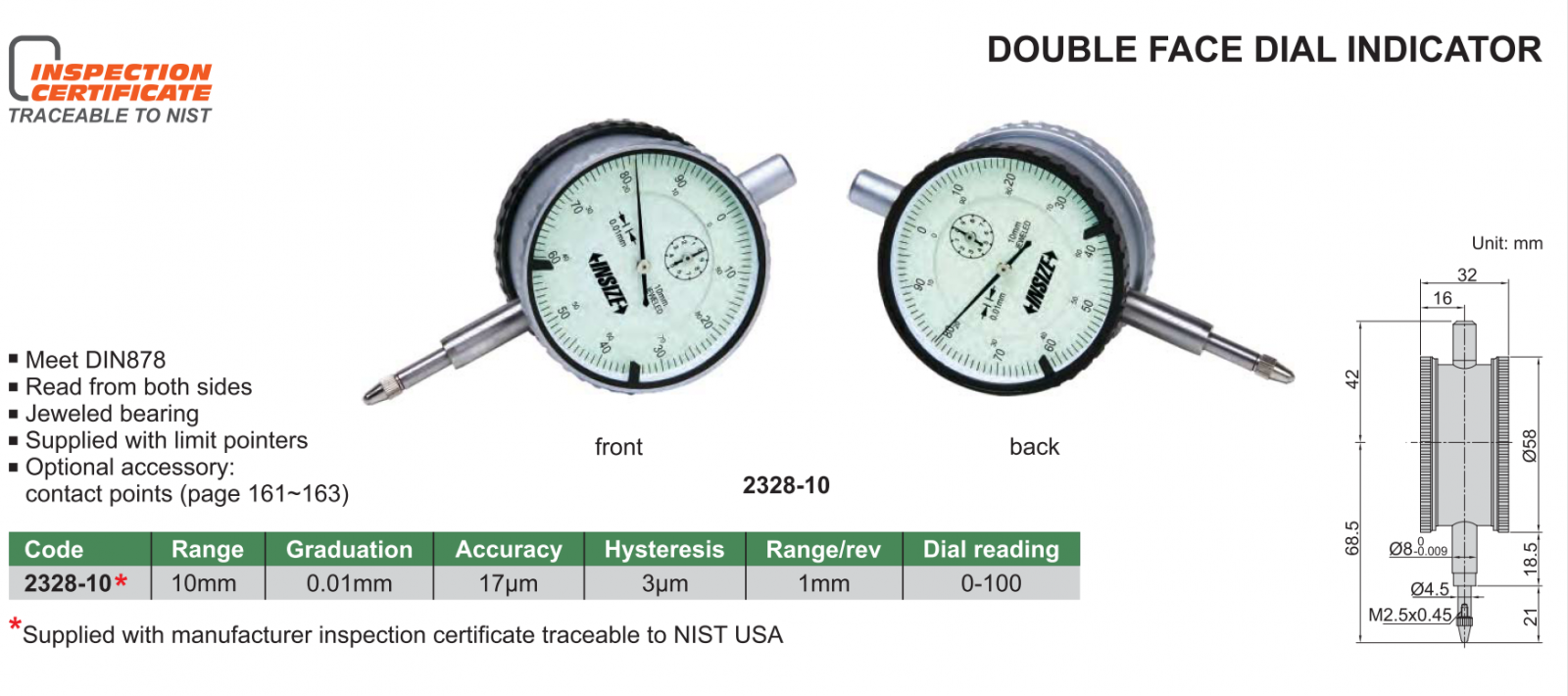 Đồng hồ so chân gập INSIZE là loại đông hồ so ứng dụng đo độ dơ, độ lệch trong gia công và sản xuất cơ khí