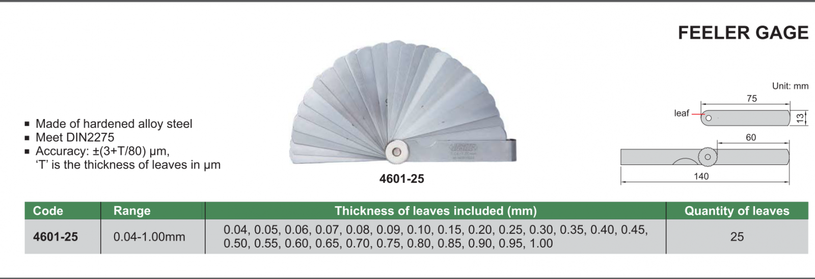 Dưỡng đo độ dày INSIZE 4601-25 , FEELER GAGE 4601-25