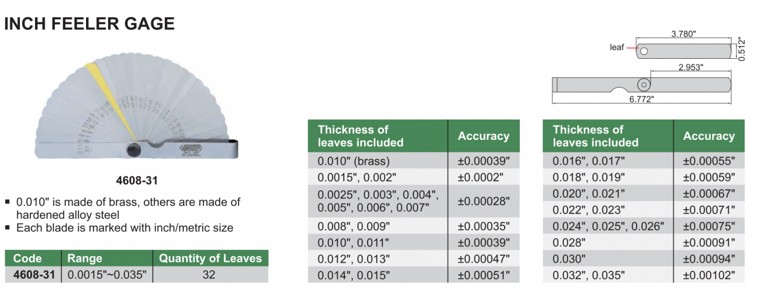 Dưỡng đo độ dày INSIZE 4608-31 , INCH FEELER GAGE 4608-31