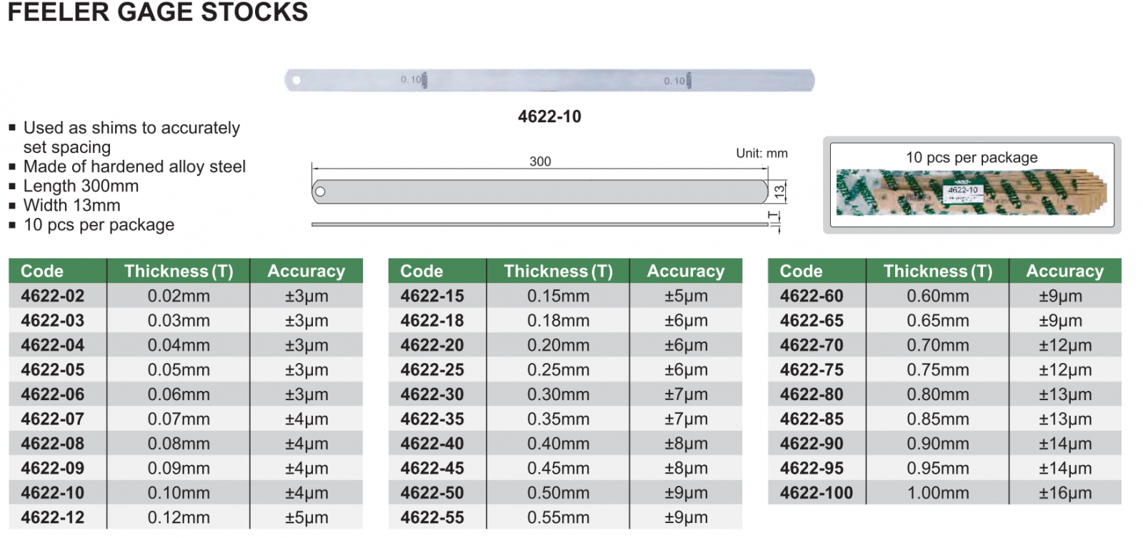Dưỡng đo độ dày INSIZE 4622-10 , FEELER GAGE STOCKS 4622-10