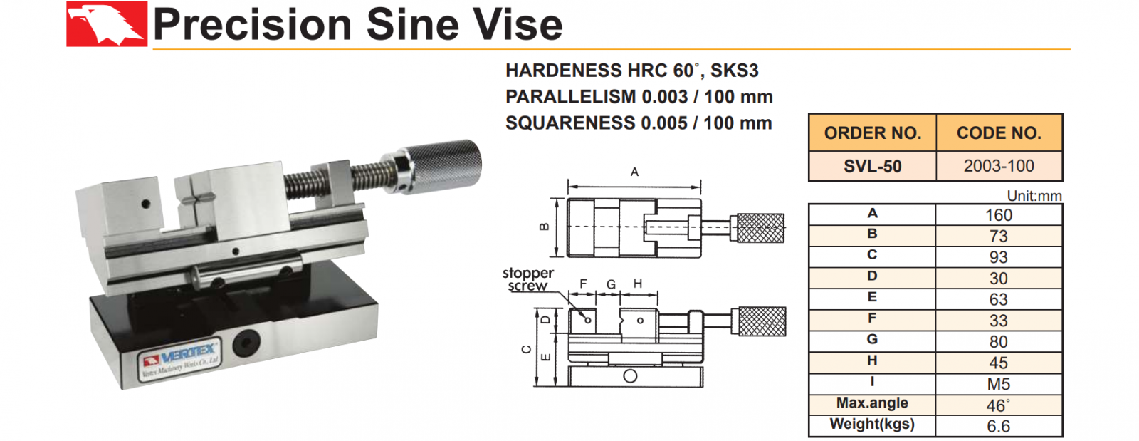 Ê tô máy mài nghiêng Vertex SVL-50 dùng để gá kẹp các chi tiết trong quá trình mài nghiêng.