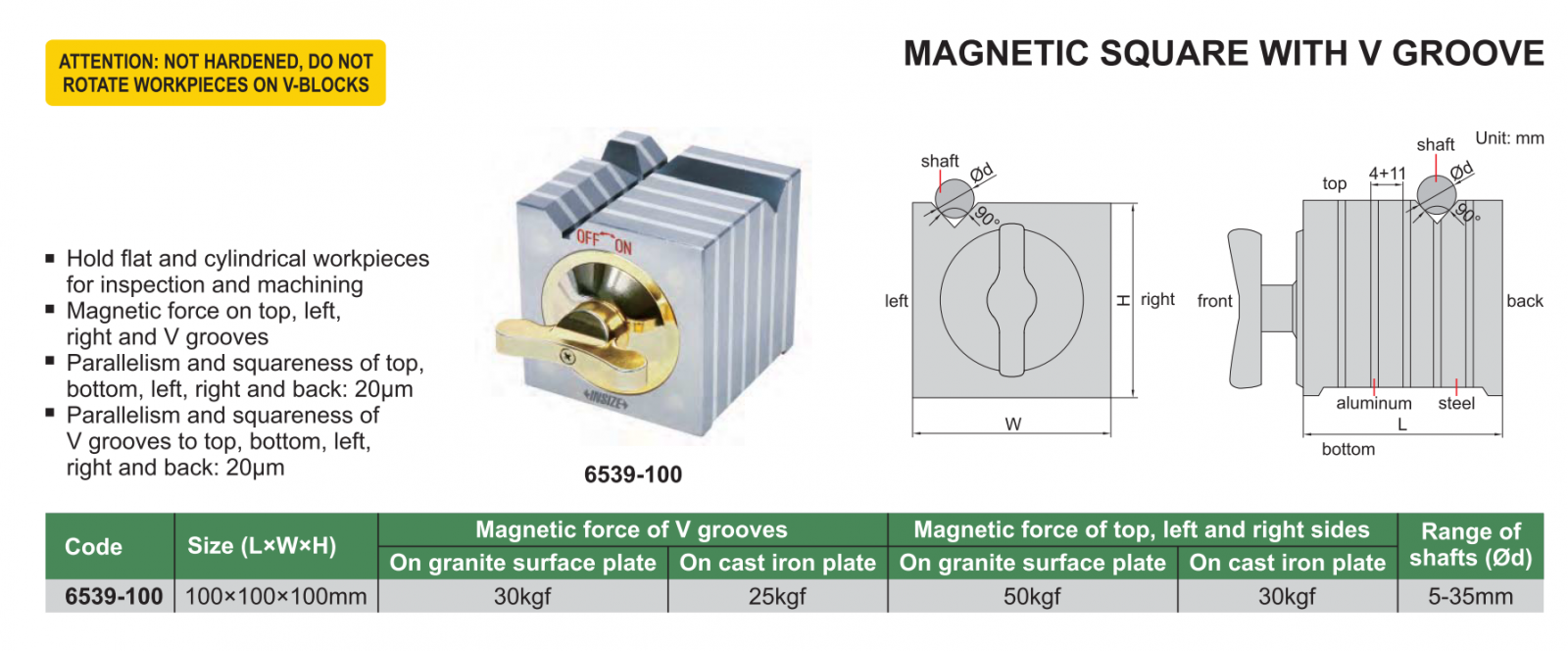 Khối V từ cố định INSIZE 6539-100 , MAGNETIC SQUARE WITH V GROOVE 6539-100