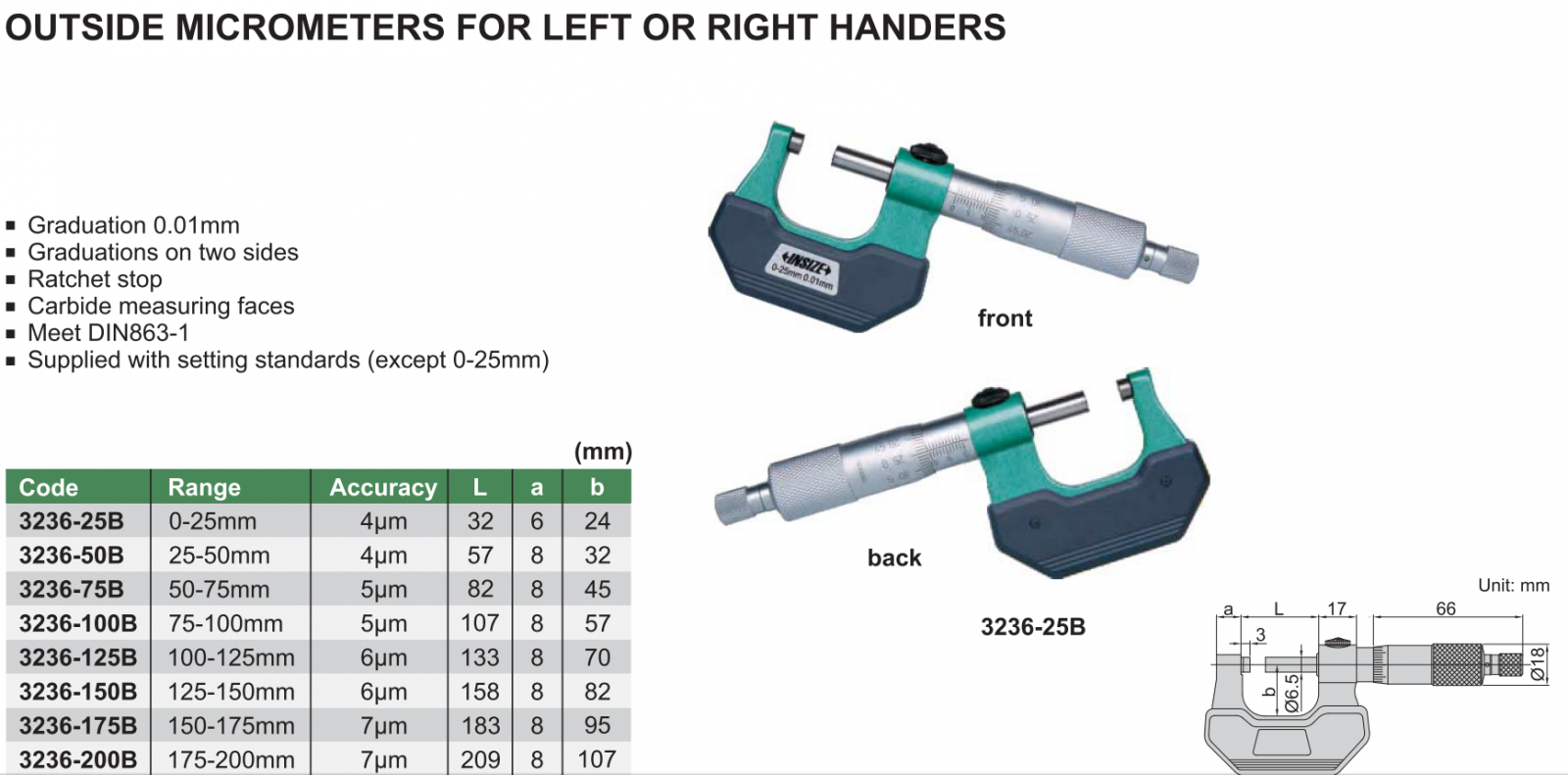 Panme cơ khí INSIZE là đồ dùng có nhiều chức năng phạm vi đo rộng, độ chính xác tương đối cao, dễ sử dụng, giá cả rẻ…
