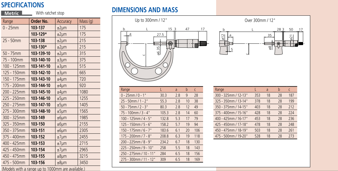 Mã hàng 103-130 là dụng cụ đo panme cơ khí đo ngoài khoảng đo từ 25-50mm/0.001mm