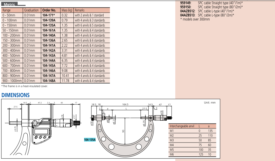 Mã hàng 104-144A là dụng cụ đo panme cơ khí đo ngoài khoảng đo từ 500-600mm/0.01mm