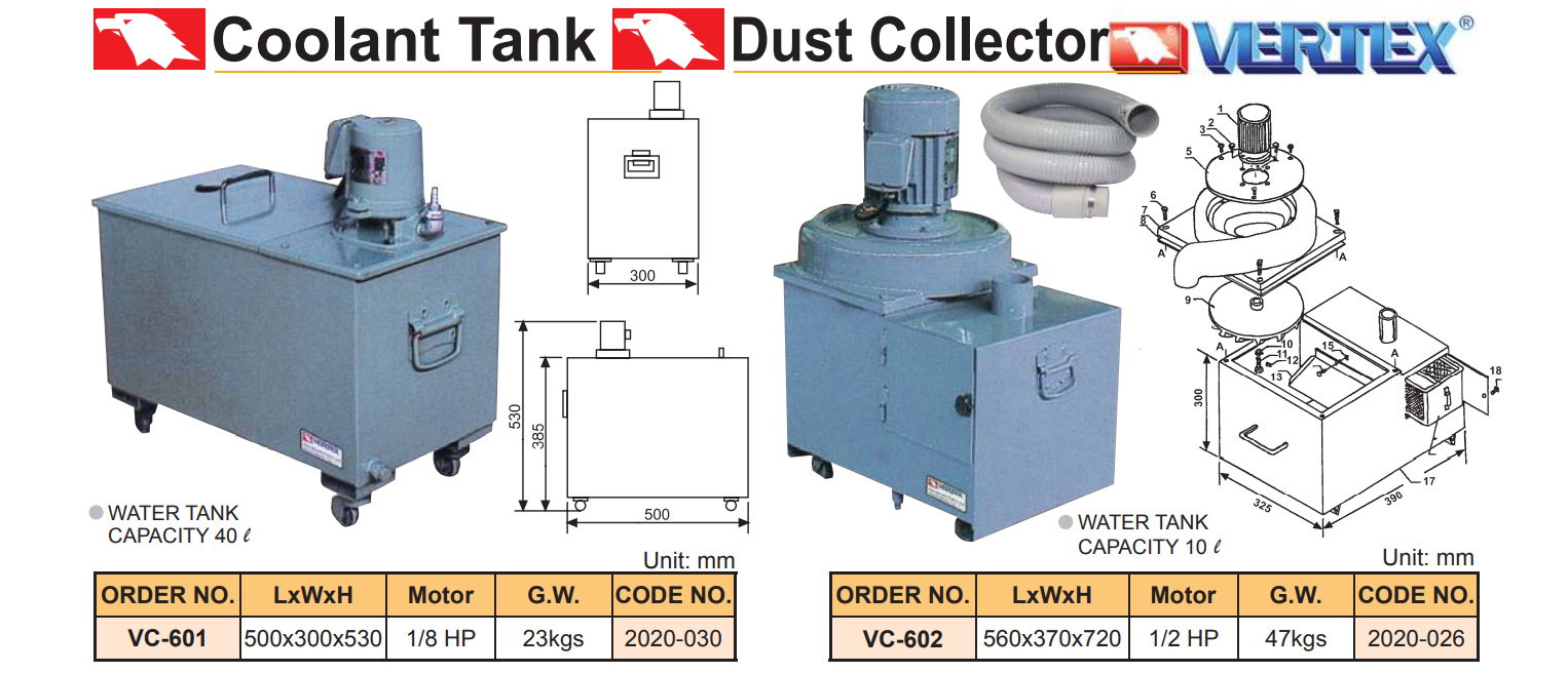 – Thiết bị lọc dung dịch tưới nguội VC-602 có gắn mô tơ 1/2HP để tạo lực ly tâm để tách phoi ra khỏi dung dịch tưới nguội.