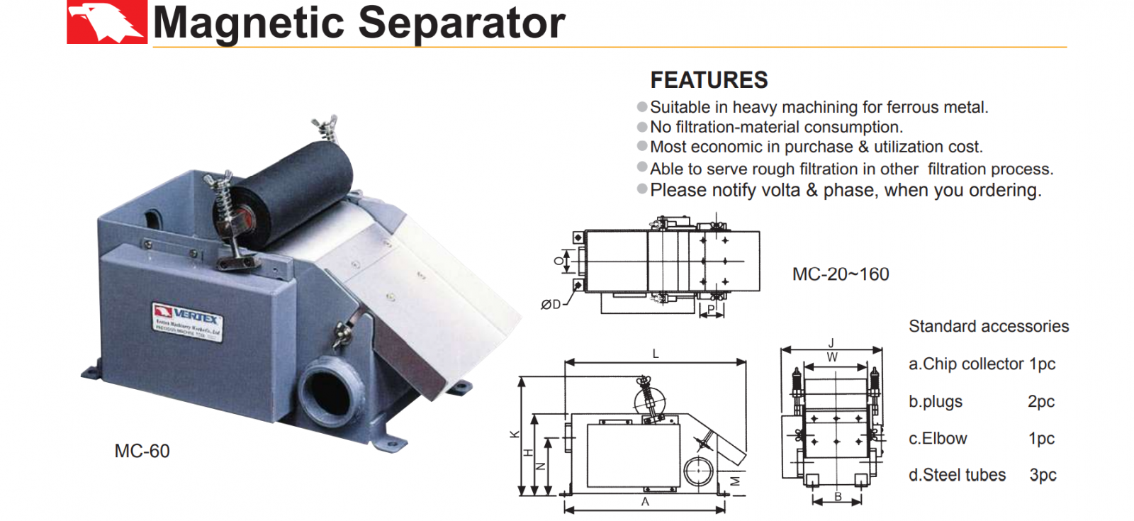 – Thiết bị lọc nước cnc bằng từ tính MC-20, MC-40, MC-60, MC-80, MC-120, MC-160 của VERTEX dùng lọc các phoi thô ra khỏi nước làm mát trên máy cnc, máy mài,…