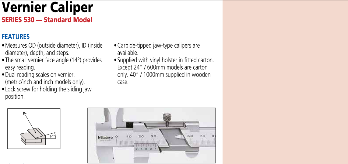 Mã hàng 530-100 là thước cặp cơ khí 0-100/0.05mm