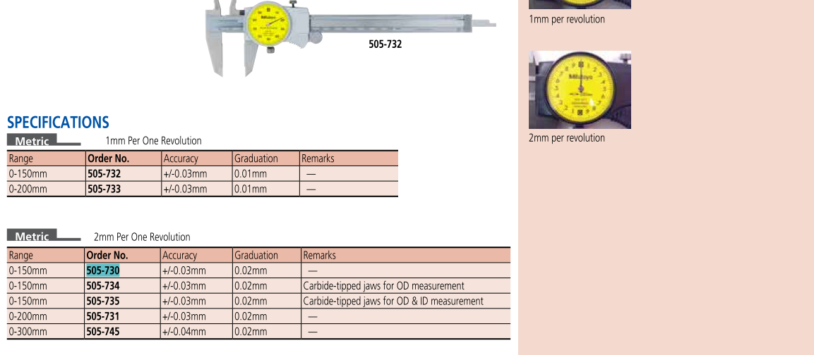 Mã hàng 505-733 là thước cặp cơ khí 0-200mm/0.01mm