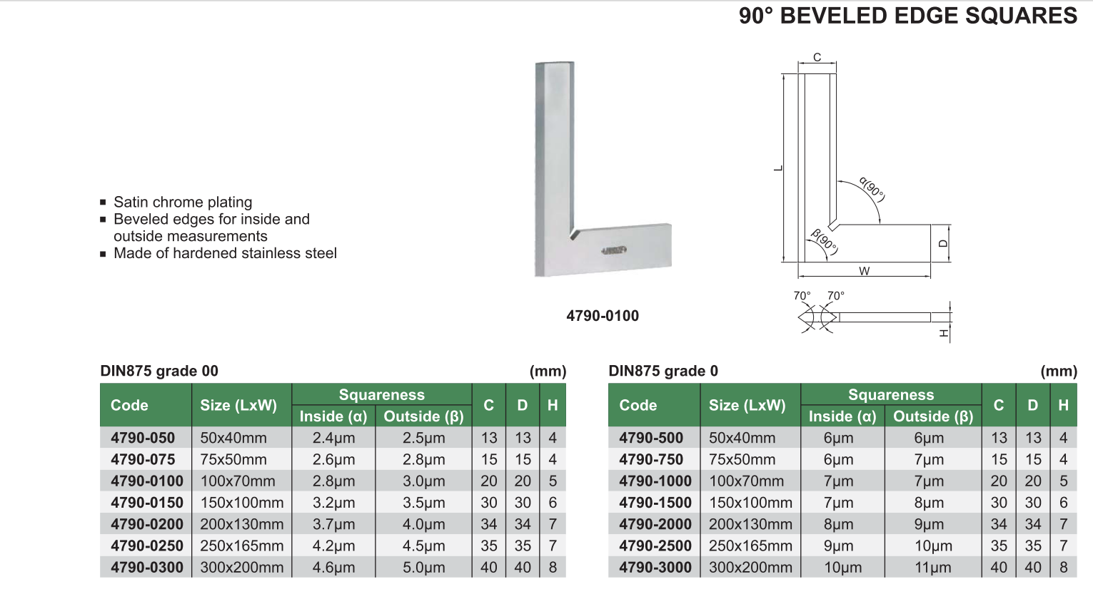 Thước đo góc INSIZE 4790-0100 , 90 BEVELED EDGE SQUARES 4790-0100