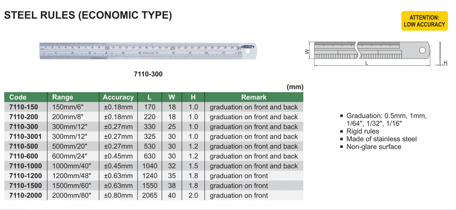 Thước lá INSIZE 7110-300 , STEEL RULES ( ECONOMIC TYPE ) 7110-300