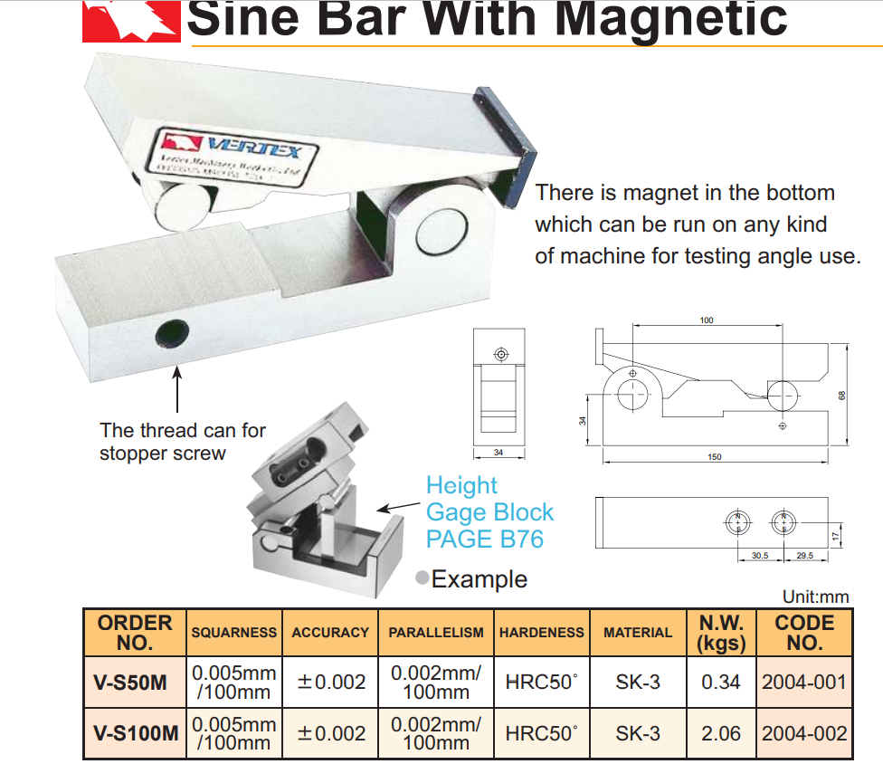 Bàn nghiêng từ tính Vertex V-S100M dùng để gá các ê tô máy mài trong quá trình mài nghiêng.