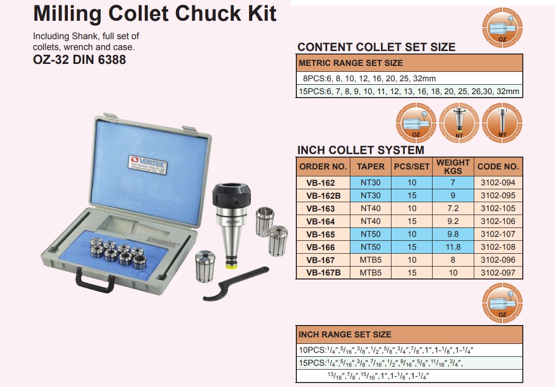 – Collet OZ-32 theo tiêu chuẩn MAS (xem sản phẩm Collet OZ).