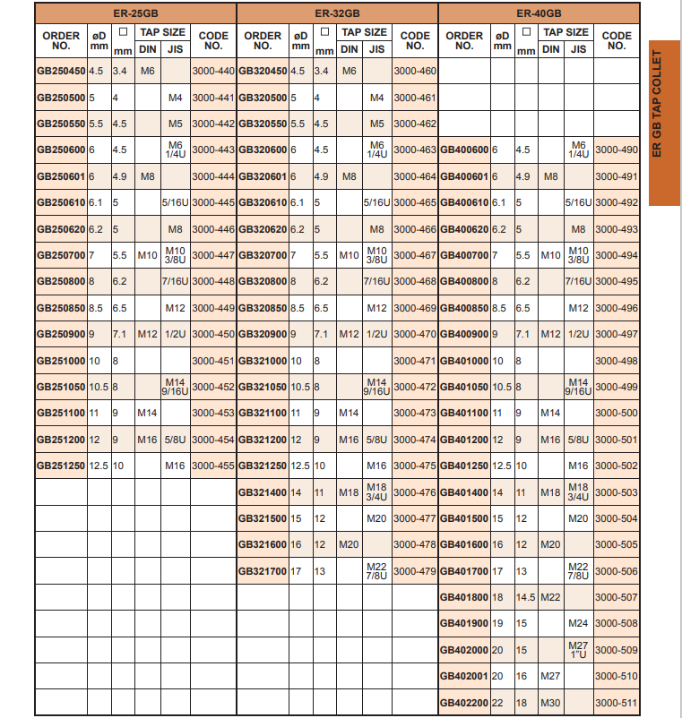 COLLET KẸP MŨI TA RÔ ER- GB ER-16GB; ER-20GB; ER-25GB; ER-32GB; ER-40GB