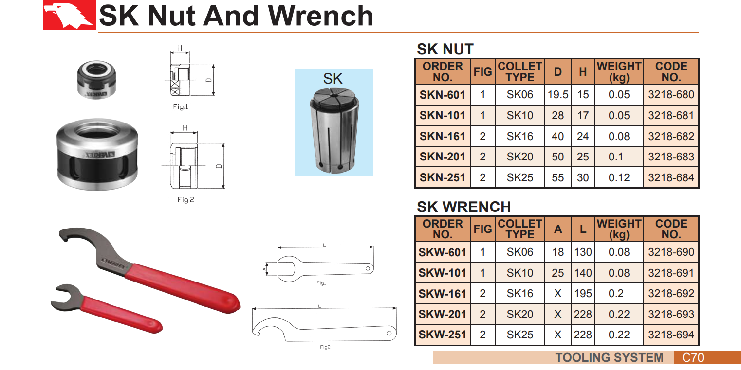 ĐAI ỐC KẸP COLLET VÀ CHÌA VẶN VERTEX SKN-601; SKN-101; SKN-161; SKN-201; SKN-251; SKW-601; SKW-101; SKW-161; SKW-201 SKW-251