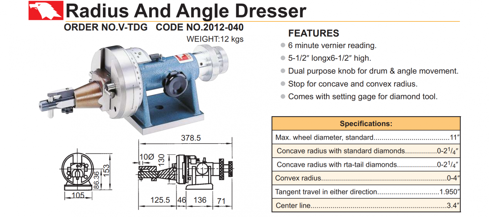 Đồ gá điều chỉnh góc mài mã V-TDG được nhập khẩu trực tiếp từ Vertex, CO, CQ được cấp bởi phòng thương mại Đài Loan, sản phẩm có kết cấu đơn giản, dễ sử dụng, sản phẩm có thể sửa đá chính xác theo yêu cầu bạn mong muốn. Hàng được phân phối trên toàn quốc.