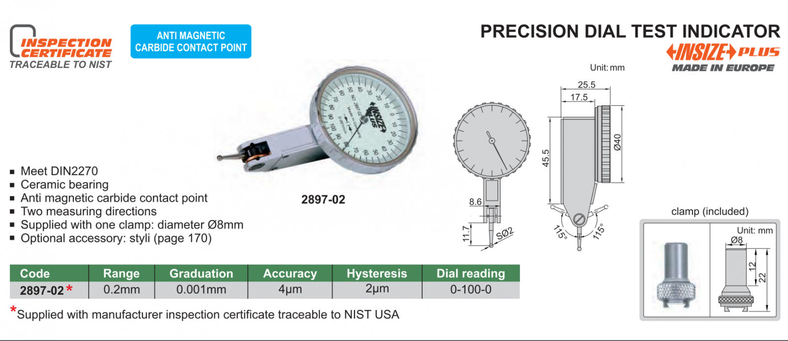 Đồng hồ so chân gập INSIZE là loại đông hồ so ứng dụng đo độ dơ, độ lệch trong gia công và sản xuất cơ khí