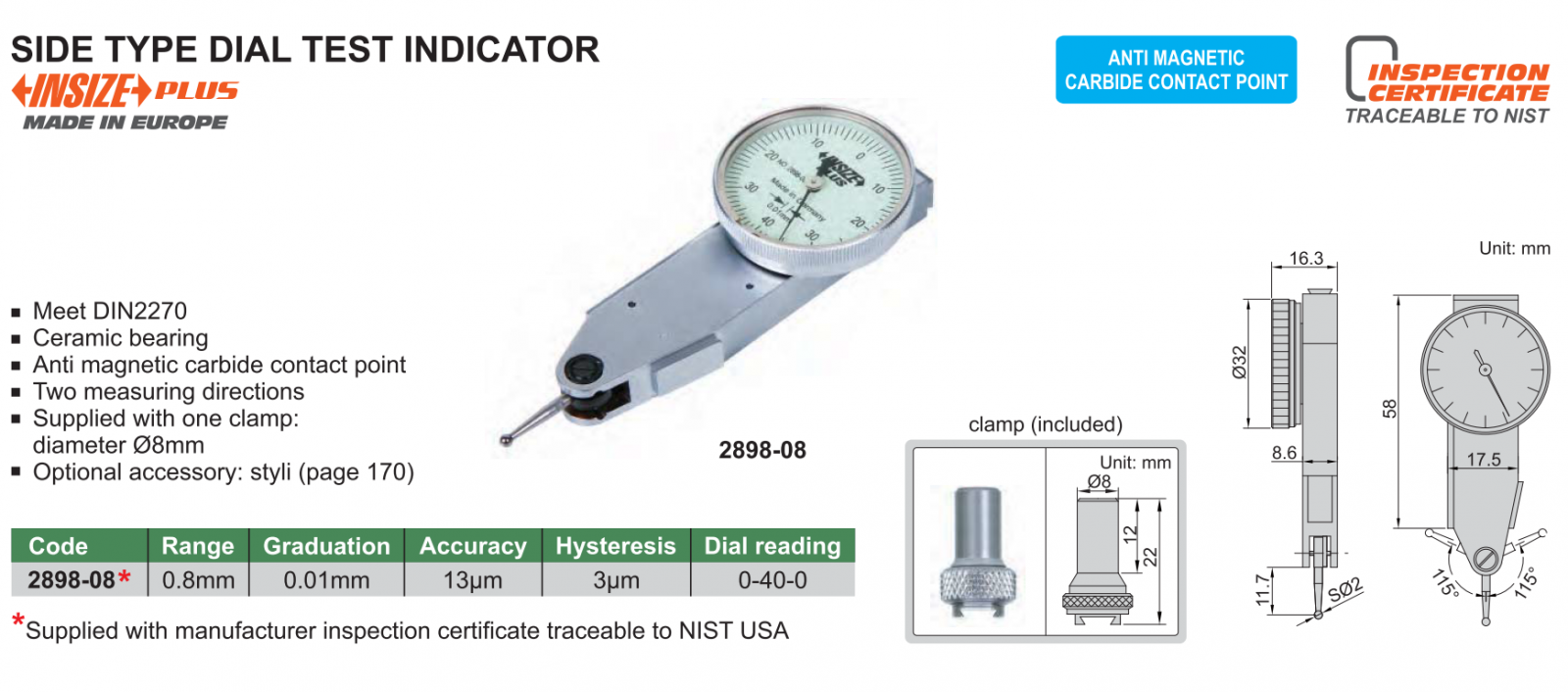 Đồng hồ so chân gập INSIZE là loại đông hồ so ứng dụng đo độ dơ, độ lệch trong gia công và sản xuất cơ khí
