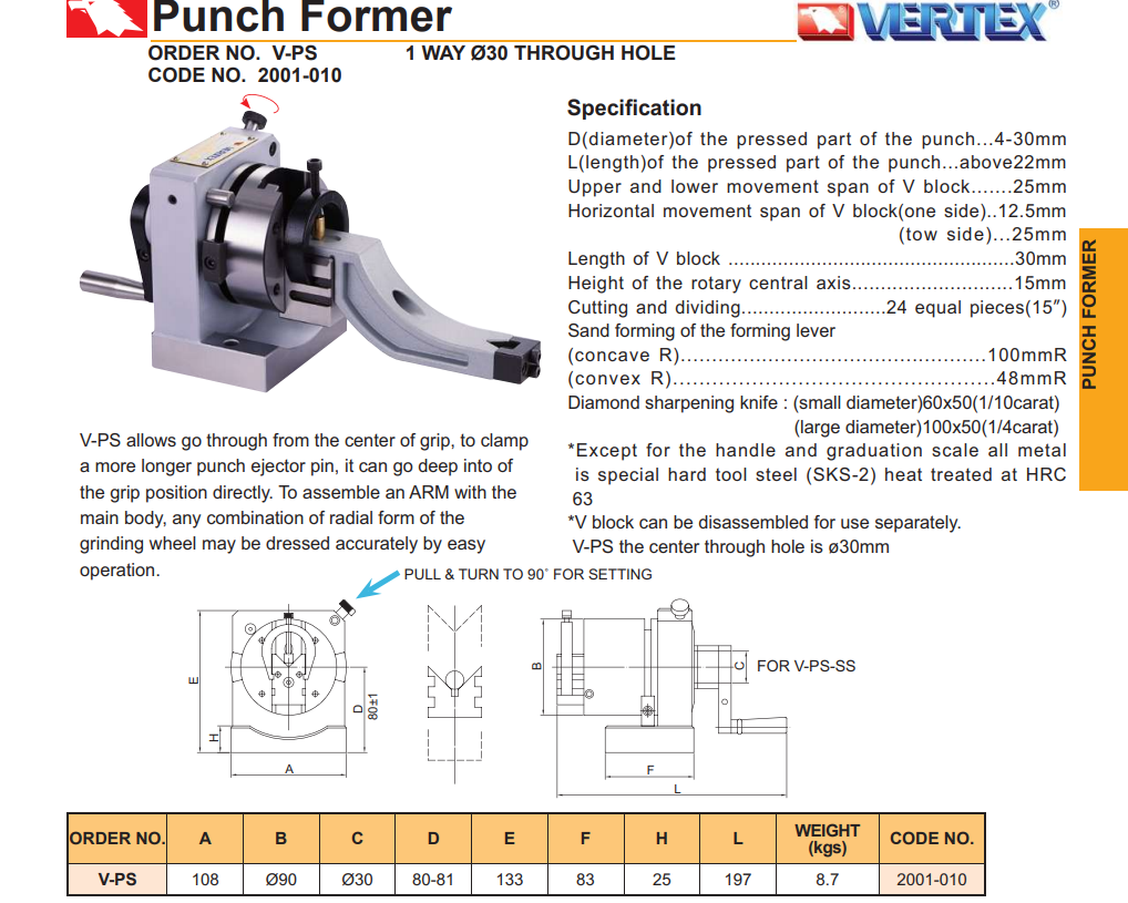 – Mã sản phẩm V-PS là loại lỗ thông
