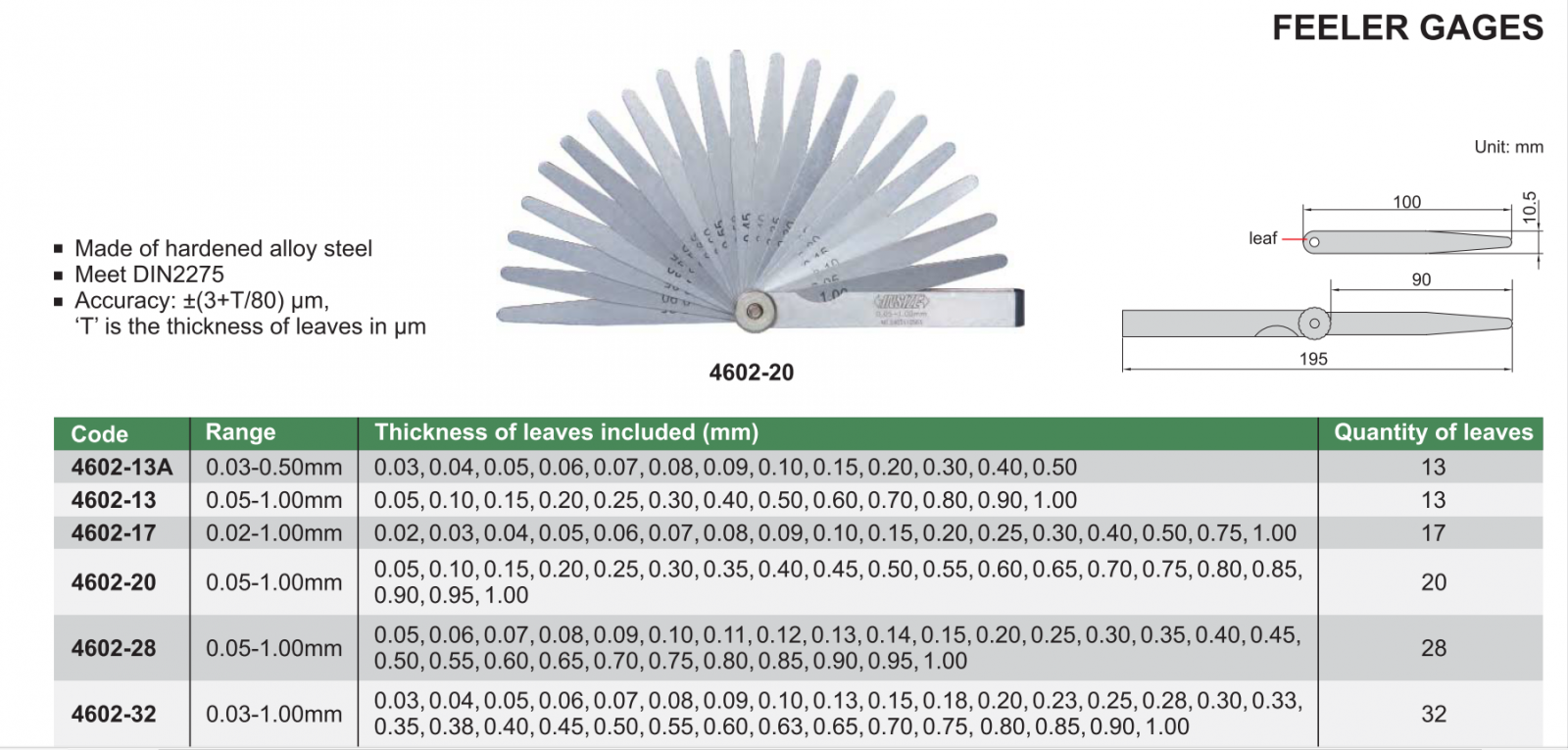 Dưỡng đo độ dày INSIZE 4602-20 , FEELER GAGES 4602-20