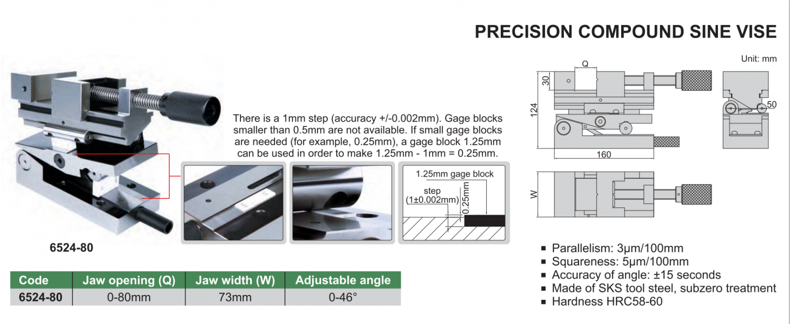 Ê-tô (bàn kẹp) chính xác cao INSIZE 6524-80 , PRECISION COMPOUND SINE VISE 6524-80