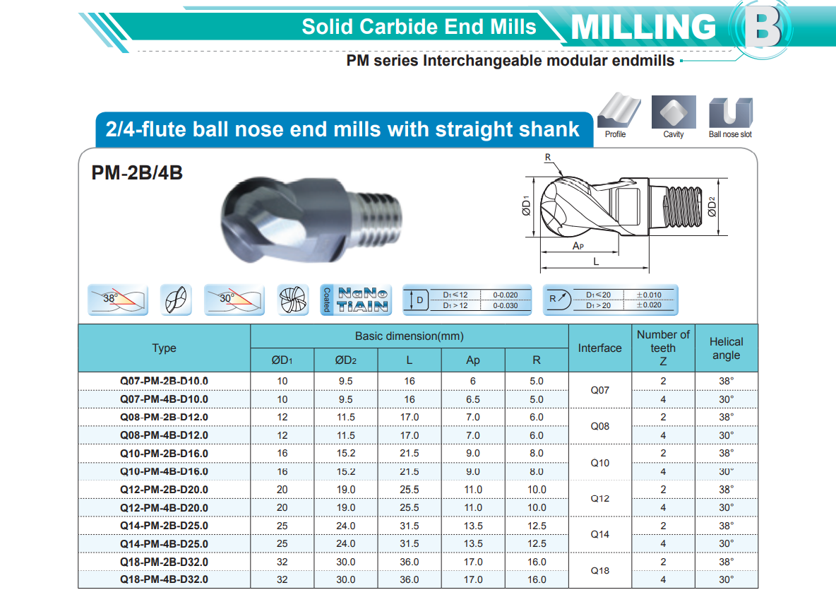 Lưỡi dao phay hợp kim ZCCCT PM-2B/4B là dòng dụng cụ cắt đa dụng cho hiệu suất cực cao tạo bề mặt chi tiết mịn bóng, dụng cụ cắt này áp dụng cho công việc gia công nhiều vật liệu như các loại thép hợp kim, thép gang, thép dẻo, Inox ... thích hợp gia công độ chính xác cao, đáp ứng được những tiêu chuẩn khắt khe trong gia công.