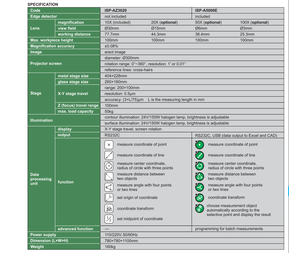 Máy đo Biên Dạng INSIZE ISP-AZ3020 , PROFILE PROJECTORS ISP-AZ3020 là dòng máy đo biên dạng với nhiều tính năng vô cùng tân tiến và hiện đại. Sở hữu khả năng đo kích thước của biên dạng vô cùng đa dạng với 8 chức năng khác nhau. Sẽ đem đến cho quý khách hàng kết quả đo chuẩn xác hơn và đáp ứng được nhiều nhu cầu đo đạc khác nhau hơn