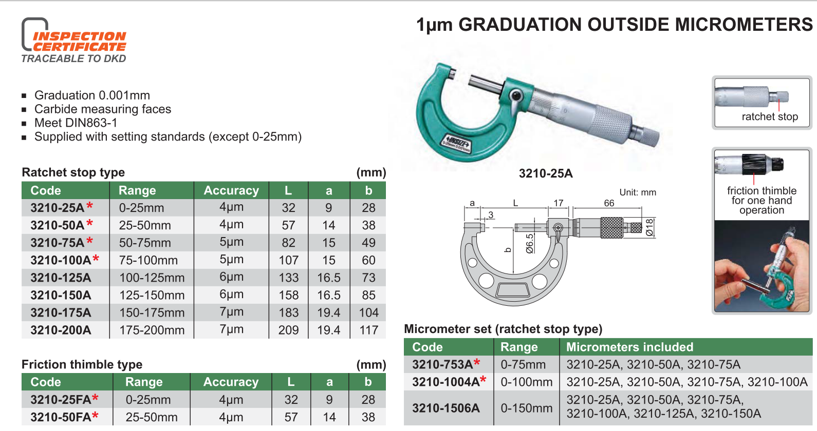 Panme cơ khí INSIZE là đồ dùng có nhiều chức năng phạm vi đo rộng, độ chính xác tương đối cao, dễ sử dụng, giá cả rẻ…