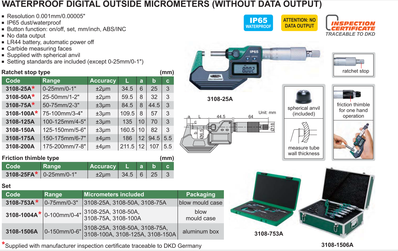Panme điện tử INSIZE là đồ dùng có nhiều chức năng phạm vi đo rộng, độ chính xác tương đối cao, dễ sử dụng, giá cả rẻ…