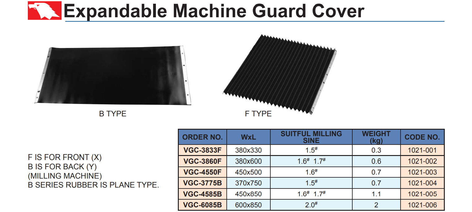 – Kiểu F dạng gấp cửa xếp co giãn dùng cho phía trước bàn máy phay.
