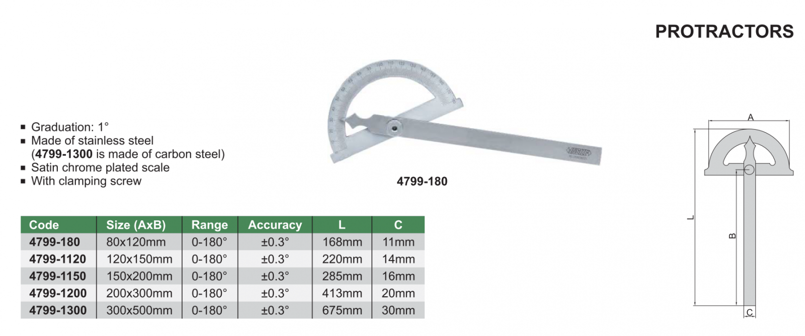 Thước đo độ INSIZE 4779-180 , PROTRACTORS 4779-180